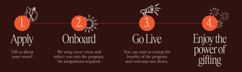 From filling the sign-up form, your venue will be onboarded, trained, and live accepting Best Restaurants gift cards within the first week.