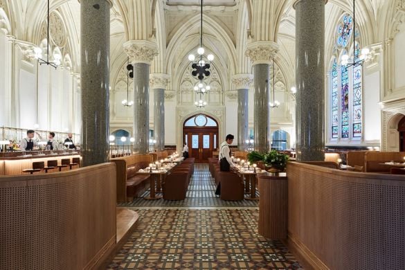 Housed in the heritage-listed Georges Building on Collins Street, The George on Collins fuses pan-Asian flair with Melbourne’s signature sense of style. The menu, of plates destined to be shared, celebrates bold flavour and refined technique: think prawn and ginger dumplings with XO sauce, sticky lamb ribs braised in Mekong whiskey, and fiery Thai curries. Cocktails are playful and precise, from a classic Spicy Margarita to the indulgent One Night in Paris. With moody lighting, polished granite, and softly curtained booths, The George on Collins captures the perfect balance between sophistication, heritage and fun.